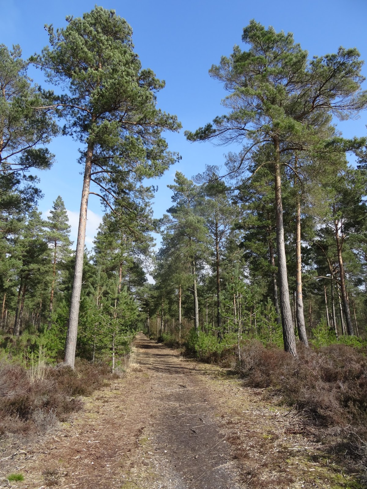 A nice walk in Hurn forest with Phoebe this afternoon. It's a really large area but I only had a short walk with her from the car park just passed the runway on Matchams lane. I went up the main track and when I reached a bench turned left through pines. Turning right and then taking 2nd right I came back to the main track. At the junction beside the bench I took a small track to my right and turn left at the next junction to return to the car park. The car park has room for around 10 cars but has a very narrow entrance. Paths are dry and sandy while the main track is of good gravel.